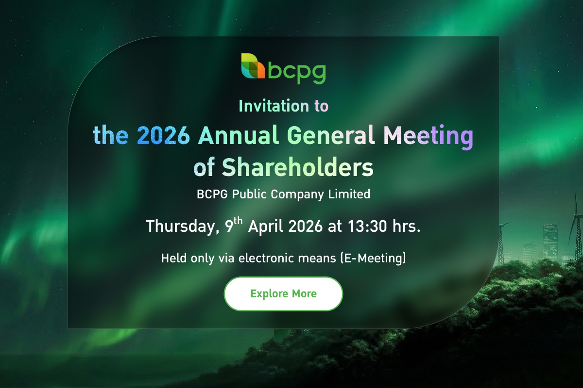 BCPG Public Company Limited (BCPG) is among Asia-Pacific’s leading companies in renewable energy with solar power, hydropower, wind power and natural gas businesses in Thailand, Taiwan, Laos, Vietnam, the Philippines and the United States.