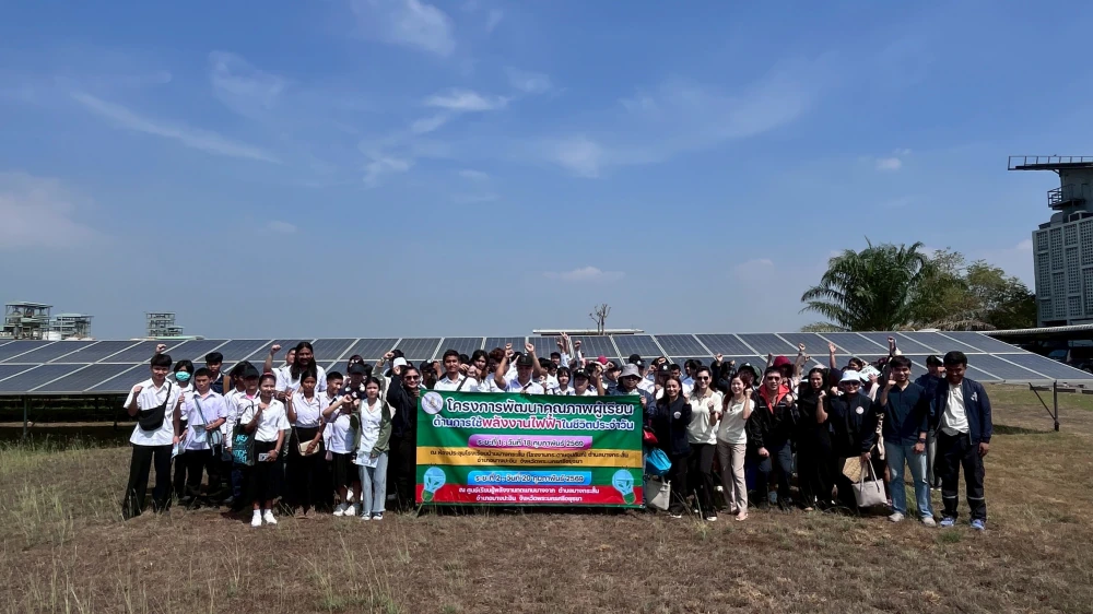 นอกจากนี้ คณะอาจารย์และนักศึกษายังได้มีโอกาสเดินชมโรงไฟฟ้าพลังงานแสงอาทิตย์บางปะอิน พร้อมเรียนรู้วิธีการทำงานของแผงโซลาร์หลากหลายประเภท อาทิ แผงโซลาร์แบบติดตั้งบนพื้นดิน แบบลอยน้ำ (Floating Solar) และแบบหมุนตามดวงอาทิตย์ (Tracking Solar) ซึ่งได้รับความสนใจจากคณะเป็นอย่างมาก
